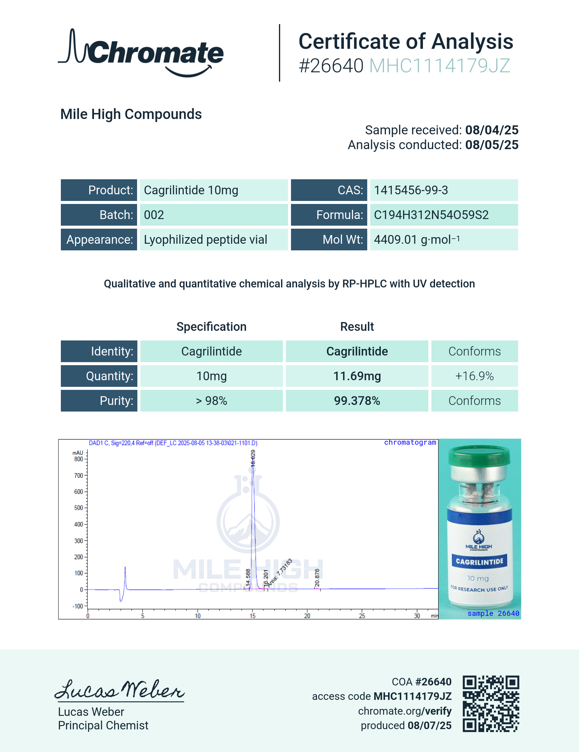Terms of Sale:By purchasing from Mile High Compounds, you acknowledge that you are a qualified researcher or institution. You assume full responsibility for compliance with all applicable federal, state, and local laws. All sales are final. Improper use or handling voids all responsibility on our part.
